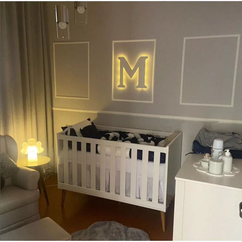 Produzida em PVC, é leve, resistente e possui ótimo acabamento. A iluminação interna cria um efeito luminoso agradável, destacando a letra de forma elegante. O funcionamento é simples e prático: utiliza 2 pilhas AAA (não inclusas) e conta com chave liga/desliga, permitindo ligar e desligar quando desejar, sem necessidade de fios ou instalação elétrica.